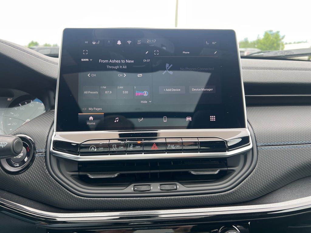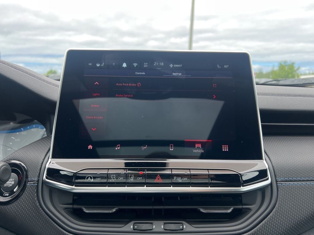 10.1 Touchscreen Display, 3.73 Final Drive Ratio, 4-Wheel Disc Brakes, 6 Speakers, ABS brakes, Air Conditioning, Alloy wheels, AM/FM radio: SiriusXM, Auto High-beam Headlights, Auto-dimming Rear-View mirror, Automatic temperature control, Brake assist, Bumpers: body-color, Compass, Delay-off headlights, Driver door bin, Driver vanity mirror, Dual front impact airbags, Dual front side impact airbags, Electronic Stability Control, Emergency communication system: Jeep Connect, Four wheel independent suspension, Front anti-roll bar, Front Bucket Seats, Front Center Armrest w/Storage, Front dual zone A/C, Front fog lights, Front reading lights, Fully automatic headlights, Heated door mirrors, Heated front seats, Illuminated entry, Knee airbag, Leather Shift Knob, Leather steering wheel, Leatherette Seats, Low tire pressure warning, Occupant sensing airbag, Outside temperature display, Overhead airbag, Overhead console, Panic alarm, ParkView Rear Back-Up Camera, Passenger door bin, Passenger vanity mirror, Power door mirrors, Power driver seat, Power Front/Fixed Rear Full Sunroof, Power steering, Power windows, Premium Alpine Speaker System, Quick Order Package 29G, Radio: Uconnect 5 w/10.1 Display, Rain sensing wipers, Rear anti-roll bar, Rear seat center armrest, Rear window defroster, Rear window wiper, Remote keyless entry, Security system, Speed control, Split folding rear seat, Spoiler, Steering wheel mounted audio controls, Tachometer, Telescoping steering wheel, Tilt steering wheel, Traction control, Trip computer, Turn signal indicator mirrors, Variably intermittent wipers, Wheels: 18 x 7 Painted Diamond Cut Alum (DISC), Wheels: 19 x 7.5 Aluminum Painted.