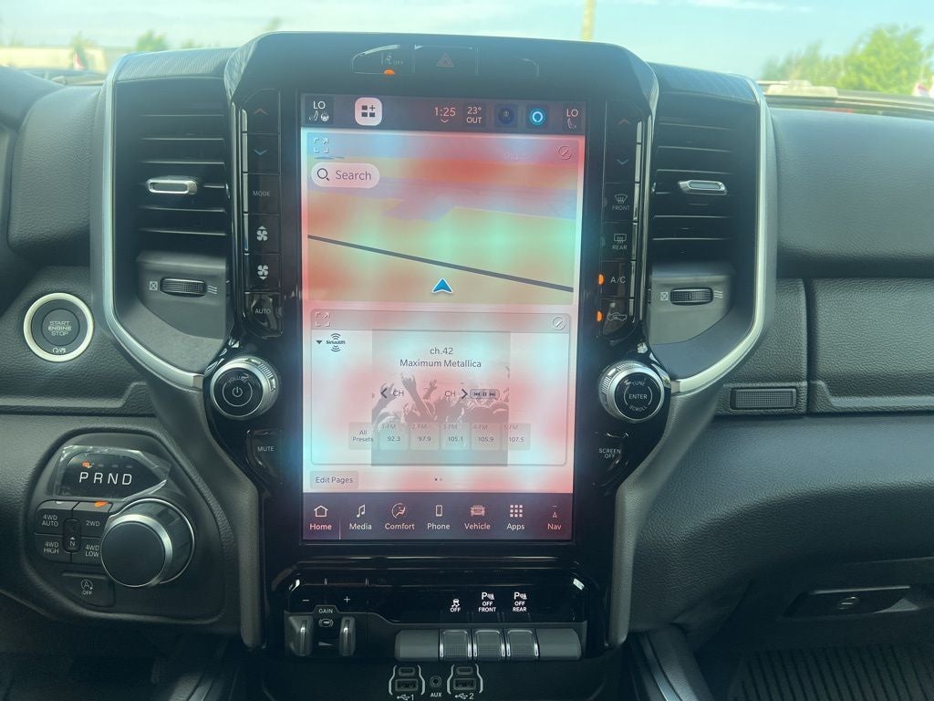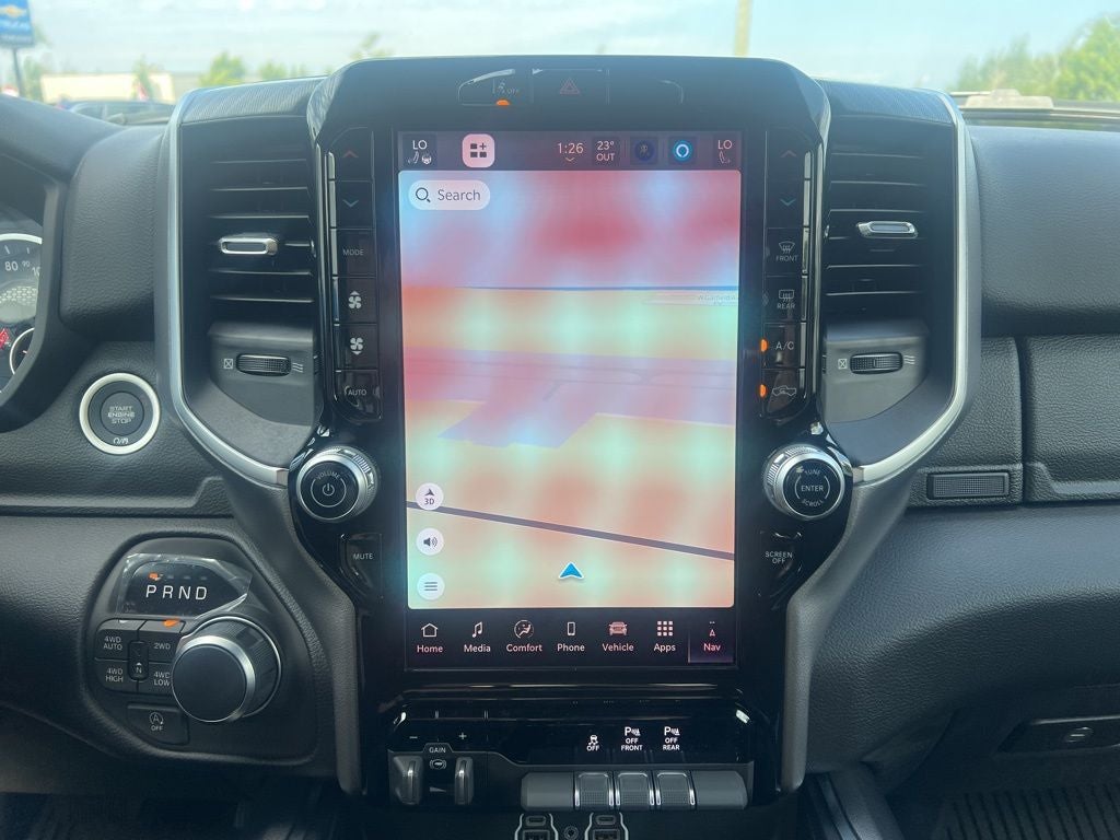 115V Auxiliary Power Outlet, 115V Auxiliary Rear Power Outlet, 12 Touchscreen Display, 3 Rear Seat Head Restraints, 4 Way Front Headrests, 4-Wheel Disc Brakes, 400W Inverter, 48V Belt Starter Generator, 4G LTE Wi-Fi Hot Spot, 6 Speakers, ABS brakes, Air Conditioning, Alloy wheels, AM/FM radio, Anti-Spin Differential Rear Axle, Apple CarPlay, Apple CarPlay/Android Auto, Auto High-beam Headlights, Auto Power-Folding Mirrors, Auto-Dimming Exterior Driver Mirror, Auto-Dimming Rear-View Mirror, Big Horn Level 2 Equipment Group, Black Exterior Mirrors, Black Interior Accents, Black Premium Power Mirrors, Body Color Door Handles, Body Color Fender Flares, Body Color Front Bumper, Body Color Tailgate Handle, Brake assist, Bucket Seats, Bumpers: chrome, Center Console Parts Module, Cloth Bucket Seats, Cluster 7.0 TFT Color Display, Compass, Configurable Drive Mode, Connectivity - US/Canada, Convex Wide-Angle Exterior Mirror Insert, Delay-off headlights, Deluxe Cloth Bucket Seats, Disassociated Touchscreen Display, Driver door bin, Dual front impact airbags, Dual front side impact airbags, Electronic Stability Control, Exterior Mirrors Courtesy Lamps, Front anti-roll bar, Front Bucket Seats, Front Center Armrest w/Storage, Front fog lights, Front reading lights, Front Seat Back Map Pockets, Front wheel independent suspension, Full Length Floor Console, Fully automatic headlights, Glove Box Lamp, Google Android Auto, GPS Antenna Input, GPS Navigation, Grille Surround 1 Body Color Texture 1 Black, HD Radio, Heated door mirrors, Heated Front Seats, Heated Steering Wheel, Illuminated entry, Integrated Center Stack Radio, Leather Wrapped Steering Wheel, LED Footwell Lighting, Low tire pressure warning, Manual Adjust 4-Way Driver Seat, Manual Adjust 4-Way Front Passenger Seat, Manual Folding Exterior Mirrors, Manufacturer's Statement of Origin, Occupant sensing airbag, Outside temperature display, Overhead airbag, Overhead console, Overhead LED Lamps, Panic alarm, ParkView Rear Back-Up Camera, Passenger door bin, Passenger vanity mirror, Power 2-Way Driver Lumbar Adjust, Power Adjust 8-Way Driver Seat, Power Adjustable Pedals, Power door mirrors, Power steering, Power windows, Premium Overhead Console, Quick Order Package 21Z Big Horn, Radio data system, RAM Grille Badge - Chrome, Rear 60/40 Folding Seat, Rear anti-roll bar, Rear Center Armrest, Rear Power Sliding Window, Rear step bumper, Rear Wheelhouse Liners, Rear Window Defroster, Remote keyless entry, Remote Tailgate Release, Security Alarm, SiriusXM Radio Service, Speed control, Sport Appearance Package, Steering Wheel Mounted Audio Controls, Supplier Part Tracking (J-1), Tachometer, Telescoping steering wheel, Tilt steering wheel, Traction control, Trailer Brake Control, Trip computer, Universal Garage Door Opener, USB Host Flip, Variably intermittent wipers, Voltmeter, Wheels: 18 x 8 Cast-Aluminum Painted.